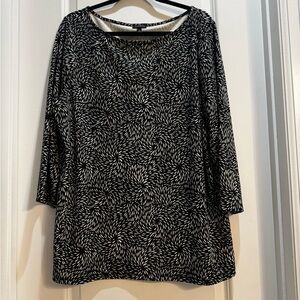 Talbots Black/white Floral Tunic XL Boatneck 3/4 Sleeves Armpit To Armpit 24”