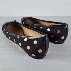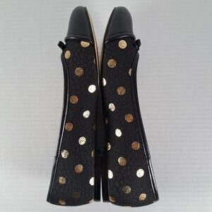 Talbots Blair Cap Toe Ballet Flats Womens 7.5 Black Gold Foil Dot Jacquard Shoes