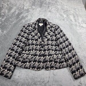 Talbots Blazer 14 P Petite Black White Tweed Wool Blend Office Preppy Jacket