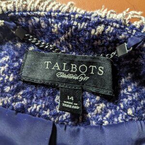 Talbots Blazer 14 Wool Mohair Alpaca Blue Tweed Open Front Office Lady Jacket