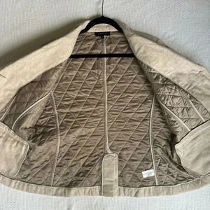Stunning preowned condition neutral wool and merino wool women’s quilted neutral blazer. Perfect addition to many styles this year: academia career western horse girl fall riding coat size 16.