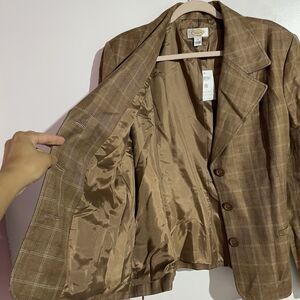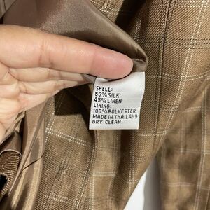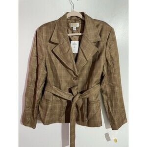 Talbots Blazer 18 Brown Silk Linen Fall Windowpane Old Money Academia Office