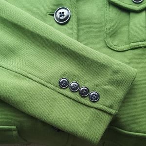 Talbots cotton knit blazer. Size Large. Gun metal buttons. Great color for Spring. Very lightly used in like new condition. Smoke free, pet free home.