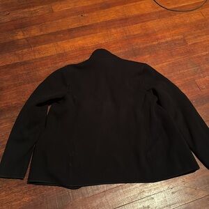 Black Talbots blazer jacket with zippered pockets & two button front closure. Cotton & rayon. Good condition.