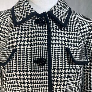 Black and White houndstooth, suit jacket, Peter Pan collar, button front