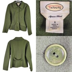 Talbots Blazer Coat Womens Size 8 Green Wool Alpaca Blend Button Front