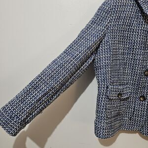 Talbots - Blazer Collared Tweed Knit- Size 12 - Blue - Wool Blend