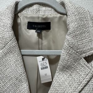 Talbots Blazer Cream Tweed Jacket Blazer Sz 12 Pockets Gold Buttons Lined NEW