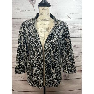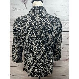 Talbots Blazer Jacket Black White Damask Print 3/4 Sleeve Size 4