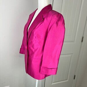 Talbots Blazer Jacket Size 8 One Button 3/4 Sleeve Silk Blend Fuchsia Pink