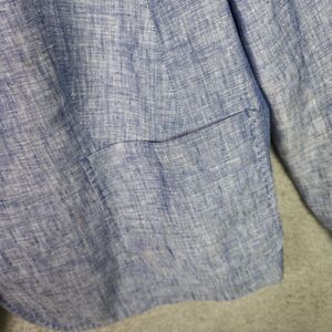 Craft a polished professional look with the Talbots Blazer Jacket, tailored for women who appreciate a combination of elegance and comfort. The chambray blue hue offers a versatile addition to your wardrobe, complementing both business and travel attire. Constructed from 100% linen, this jacket ensures breathability and a relaxed fit for those warmer seasons, be it fall, spring, or summer. Attention to detail is evident with the jacket's notch lapel style, single-breasted front with two-button closure, and three-button sleeve design. The solid pattern allows for easy pairing with a variety of pants and accessories, while the lightweight, lined construction provides a sleek silhouette. Please note, this garment requires dry cleaning to maintain its quality. This jacket is in excellent pre-owned condition.