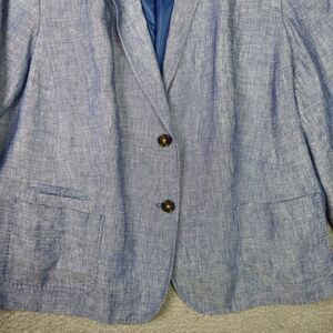 Talbots Blazer Jacket Women 22WP Chambray Blue 100% Linen Professional Career