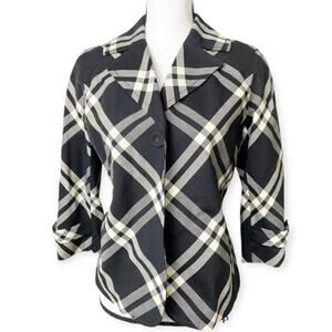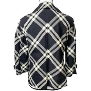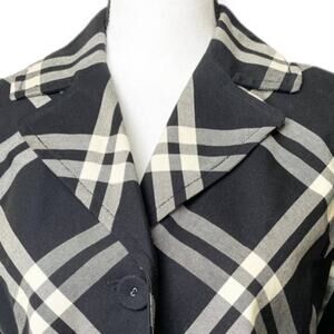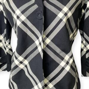 Talbots Blazer Jacket Women 4P Checkered Black White Button 3/4 Sleeve