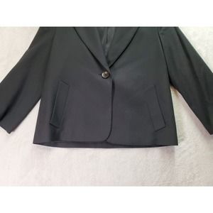 Talbots Blazer Jacket Women Size 8 Black Wool Pockets Single Breasted One Button