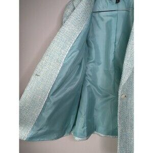 Talbots Blazer Jacket Women's 10P Aqua Blue Tweed Lined One Button Office Career