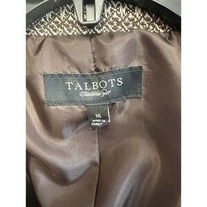 Talbots Blazer Jacket Womens 16 Brown Button Front Wool Blend Satin Lined