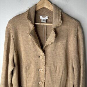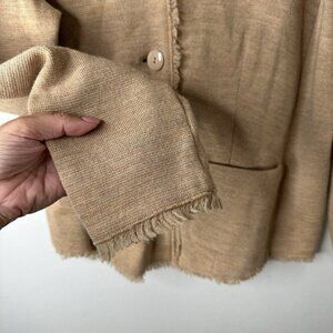 Talbots Blazer Jacket Womens 1X Petite Tan Fringed Collared Merino Wool Jacket