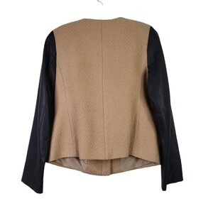 Talbots Blazer Jacket Womens 4 Wool Faux Leather Accents Tan Black Crop