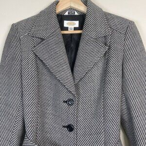 Talbots Blazer Jacket Women's 6 Black & White Striped Tie Waist Notch Lapel