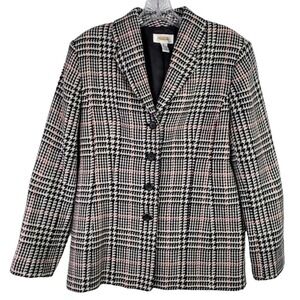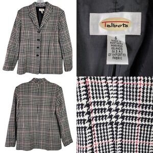 Talbots Blazer Jacket Womens Size 6 Glen plaid Tweed Black White Button Wool