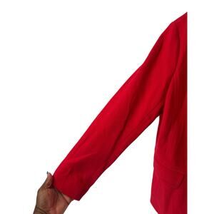 Talbots Blazer Red Mandarin Collar Office Work Business Button Front. This stunning red blazer from Talbots is the perfect addition to your professional wardrobe! Featuring a stylish mandarin collar and button-front closure, this blazer exudes sophistication and class. The size 14 fit ensures a comfortable and flattering silhouette. Ideal for the office, business meetings, or any occasion where you want to make a statement. Don't miss out on this timeless piece!