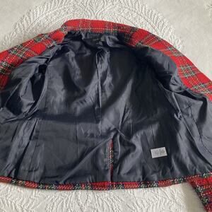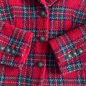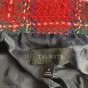 Talbots Blazer Red Tartan Plaid Wool Holiday Jacket Party office career Size 4