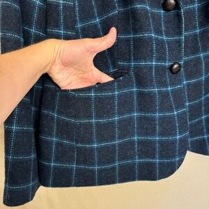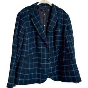 Talbots Blazer 24W Wool Plaid Jacket Women Blue Duck Academia Windowpane FALL