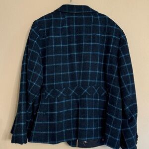 Talbots Blazer Size 24W Wool Plaid Jacket Blue Duck Academia Windowpane