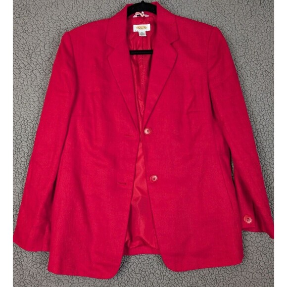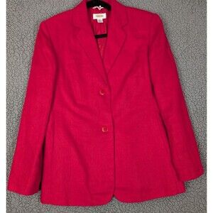 Talbots Blazer Women Sz 10 Petite Red Irish Linen 3 Button Red Career Pockets