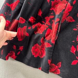 Talbots Blazer Womens 10 Black Red Rose Velvet Button Up Crop Jacket + Pockets