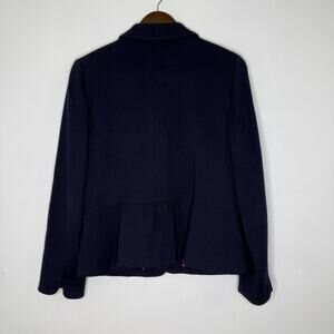 Talbots Blazer Womens 10 Navy Button Front Stretch Lined Peplum Peter Pan Collar
