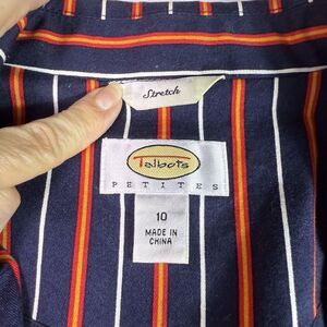 Talbots Blazer Women's 10P navy and red stripe cotton jacket blazer