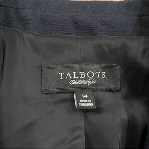 Talbots Blazer Women’s 14 Navy Logo Patch Buttons Preppy Classic Academia Office