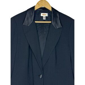 Talbots Blazer Womens 16 Black Satin Lapel Single Button Lined Tuxedo Jacket