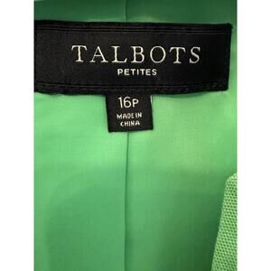 Talbots Blazer Womens 16P Green Collarless Open Front Petite Career Lined Office