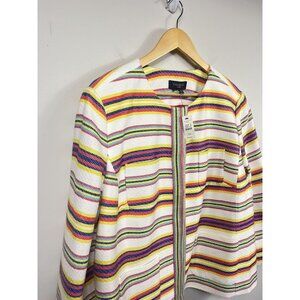 Talbots Blazer Womens 20 Ivory Pink Jacket Stripe Collarless 3/4 Sleeve