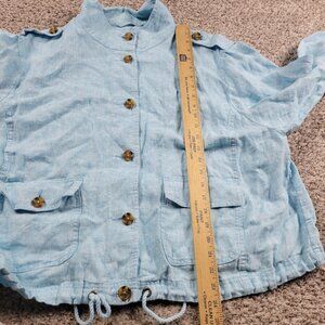 Talbots Blazer Womens 2XP Blue 100% Linen Work Office Jacket Business Button Up