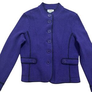 Talbots Blazer Women’s Petite Medium Purple Merino Wool Sweater Jacket Vintage