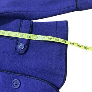 This Talbots blazer in a womens petite medium is a classic and preppy addition to any wardrobe. With its 100% wool outer shell, solid pattern, and mid-length design, it is perfect for casual occasions in the winter, fall, or spring. The long sleeves, button closure, and knit fabric make it comfortable and stylish, while the pockets add a practical touch. The color purple and the brand Talbots give it a timeless and feminine feel.