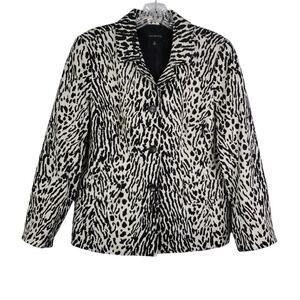 Talbots Blazer Womens Size 10 Medium Cotton Jacket Animal Print Black White