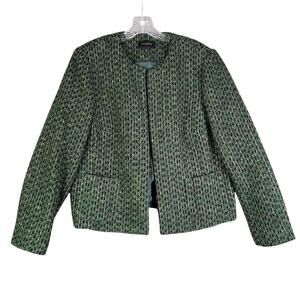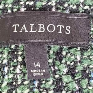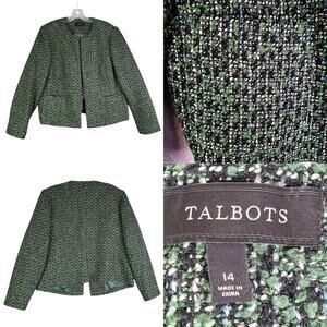 Talbots Blazer Women's Size 14 Green Tweed Long Sleeve Jacket Open Front