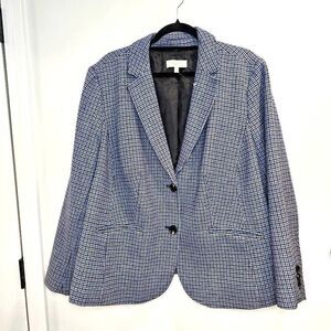 Talbots Blazer Women's 18W Plus Blue Houndstooth Notch Collared Office Jacket