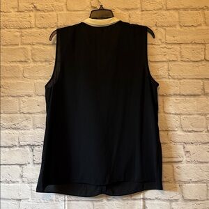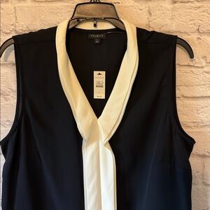Elegant sleeveless blouse with a black body and white (ivory) trim. Perfect for a sophisticated look. NWT Womes size large