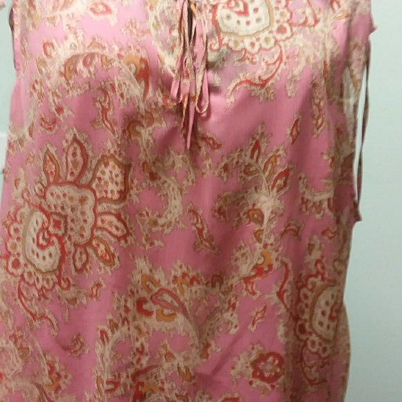 Gently worn, semi-sheer sleeveless summer blouse with matching camisole attached. Ties at front and each sleeve.