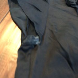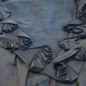 Talbots blouse in charcoal grey color, I wouldn’t exactly say black but it’s dark. Very pretty ruffle along neckline. Slight deodorant stain in armpit from trying on. Has slits on side for easy wearing.