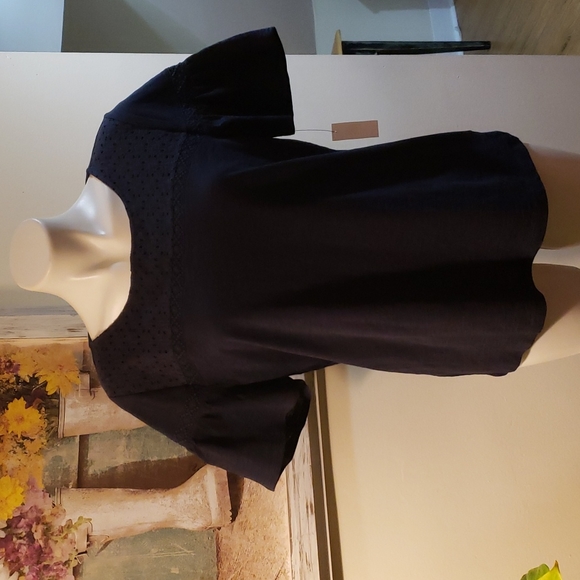 Talbots Blouse Navy Blue Ruffled Sleeve Excellent Condition, No Flaws Brand New With Tags
