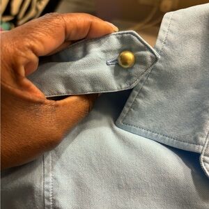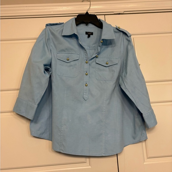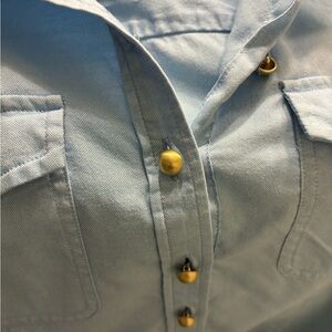 Nice blue blouse with gold button detail.