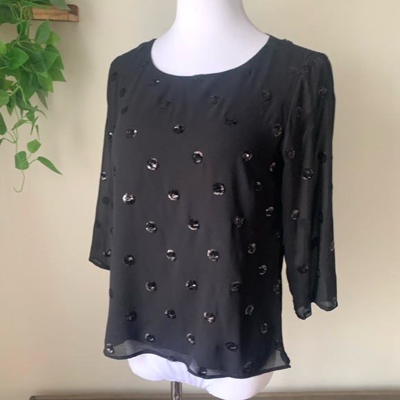 Sequin dot top with lining and side zip. Tag says petite but could fit a regular size small. Excellent condition