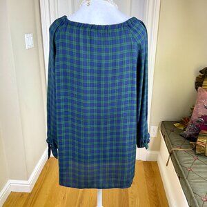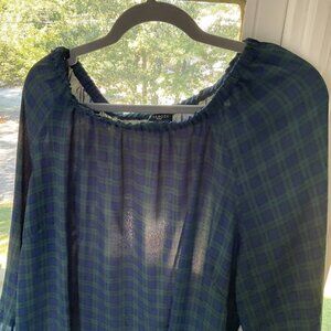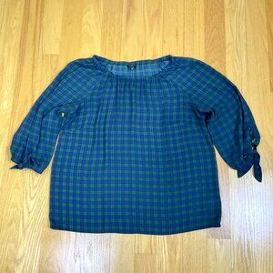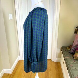 Talbots Blouse Plaid Blue Green Tartan Wide Neck ¾ Sleeve Plus (X)