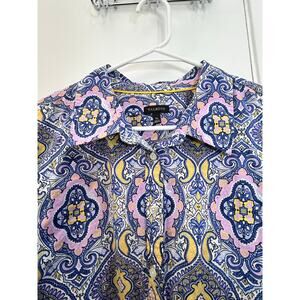 Talbots Blouse Pink Paisley Kaleidoscope Button Down Size XL, excellent condition.